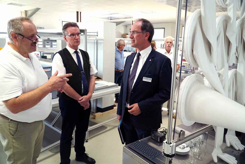 Regierungspräsident Christoph Ullrich, der sich auch in seiner Funktion als Vorsitzender des Vereins Mittelhessen e.V. für die Steigerung der Identität der Region Mittelhessen einsetzt, sagte während des Rundgangs: „Ich staune nicht nur heute, sondern immer wieder, welche Firmen in der Region beheimatet sind und was für Produkte diese herstellen.“ Vor allem die Handschuhprüfsysteme beeindruckten Christoph Ullrich.